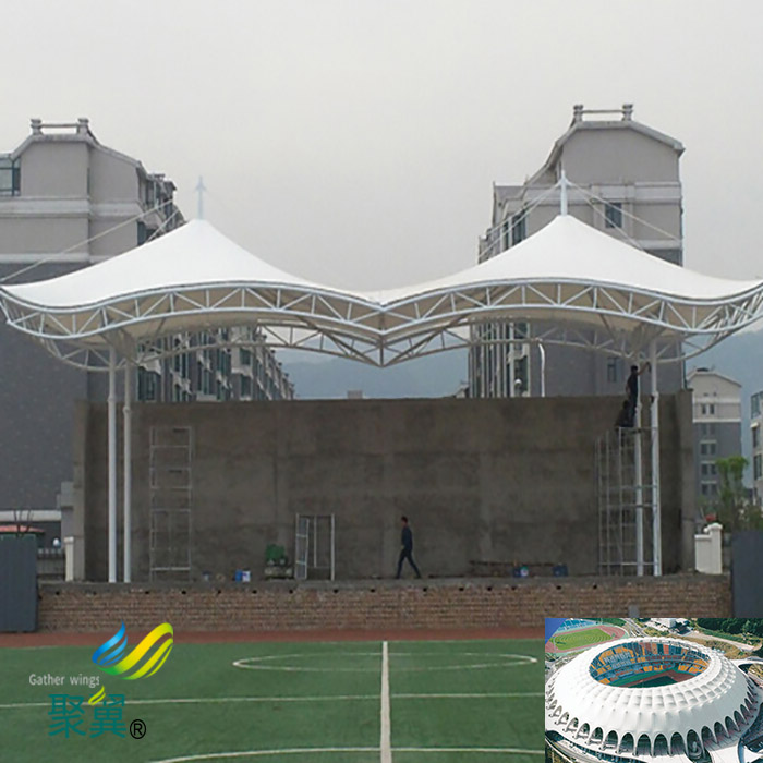 產(chǎn)品用途:膜結(jié)構(gòu)體育看臺主要用于體育看臺的遮陽防雨。