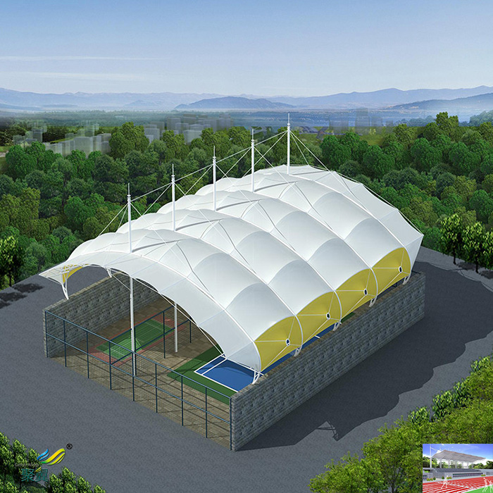 2.膜結構體育看臺建造施工工期短,膜結構加工制造都是在工廠內完成的,縮短了施答工時間,從而也為企業節省了施工成本。
