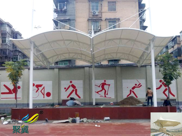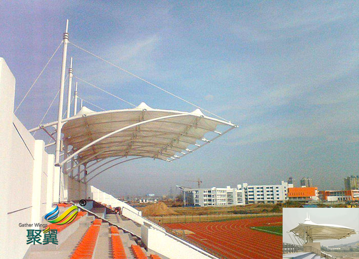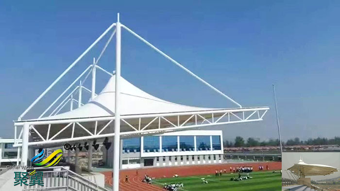 隨著膜結構的應用越來越廣泛,在膜結構建筑中又出現了一種膜結構體育看臺,我們平時見到的那種設計漂亮、美觀大氣的學校體育場看臺一般就是膜結構做的。