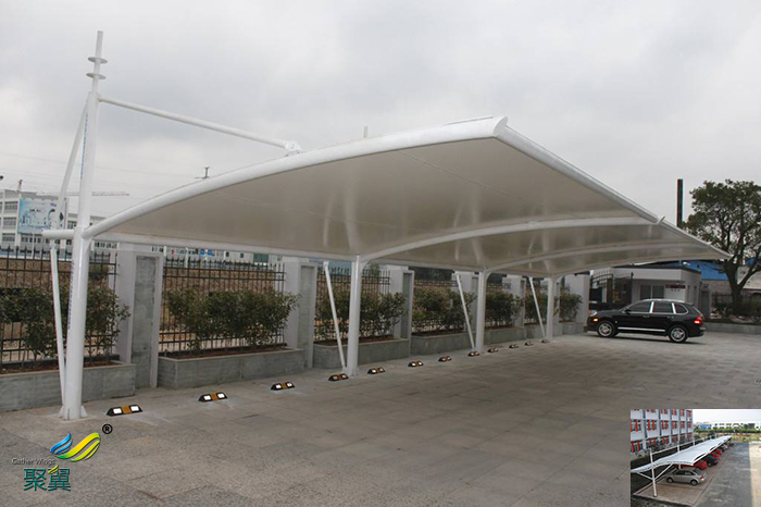 膜結構車棚一種作為屏障,用來保護車輛不受損傷的一種建筑,主要起到擋風遮雨的功能,還有膜結構車棚也是一件難得藝術品。
