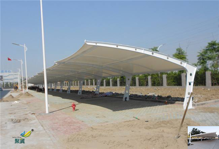 停車場的規劃和建設成為現代城市規劃的重要組成部分,變的越來越重要。景觀膜結構輕巧、別致的造型在停車場及候車廳的建設中擔當了重要角色。除了滿足防風雨、防日曬等基本功能外,它還有較好的標識招攬效果,展現了人們個性化的一面。