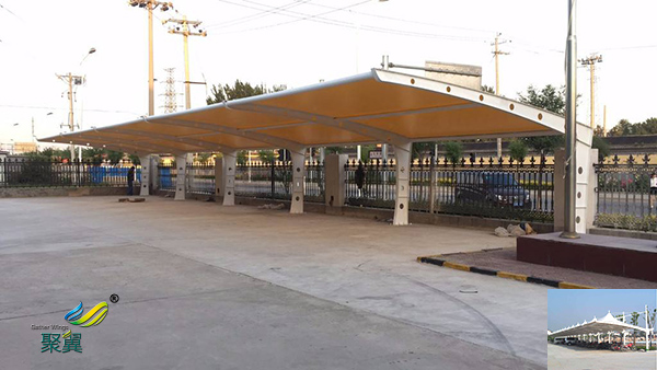 2、膜結構車棚適用范圍:社區學校、商業廣場、體育館、工廠、汽車4S店、旅游度假餐桌、政府機構等。