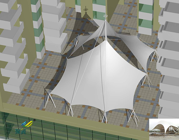景觀膜結構膜材的透光性及對光色的選擇可以通過涂層的顏色或是面層顏色來調節。通過膜材和透光保溫材料的適當組合,可以使含保溫層的多層膜具有透光性。即使光譜透射只有幾個百分點,膜屋面對于人眼來說依然是發亮和透光的,具有輕型屋面的觀感,常用建筑膜材的外觀為PVDF資料涂層,存在物理服從動搖與良好的自潔效果,膜外觀粉塵一般環境下雨水可自行沖洗干凈,同時包管建筑的使用壽命。