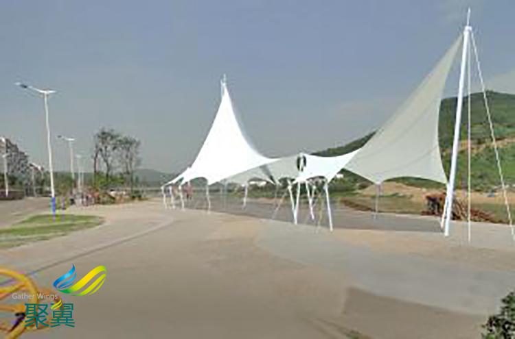 上海張拉膜過道棚還透露進一定的陽光使得車棚內不會太過于潮濕,保持一個干燥的環境。同時作為遮蓋結構,上海張拉膜過道棚膜材的張力使其能承擔一定的外荷,有趣的是,即使出現不可負重的現象,由于膜材質本身比較 輕巧,也不會帶來太多的傷害。