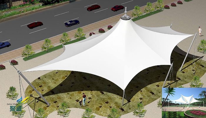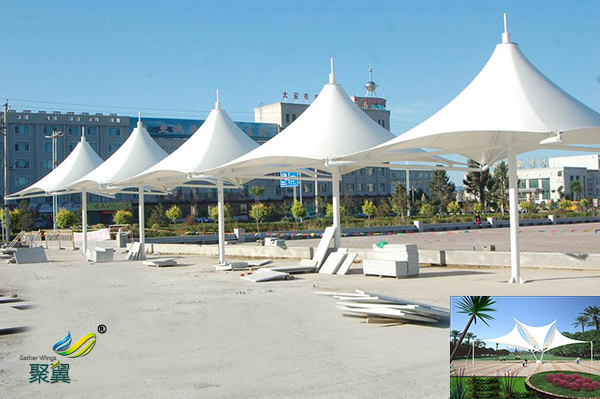 膜結(jié)構(gòu)已經(jīng)在各種公共場所廣泛使用。在商場、運(yùn)動(dòng)場、音樂廳等都可見到采用膜結(jié)構(gòu)技術(shù)各種造型的屋頂。