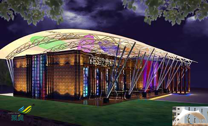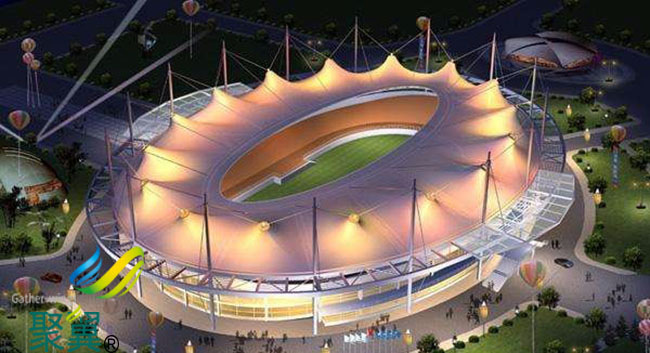 整體更加輕盈:膜材自重輕,相比傳統的建筑方式整體質量不到二分之一,舞臺膜結構通過良好的設計可以最大程度的降低用鋼量,而且抗震等級高,還能夠抵御12級以上臺風。這是一般的雨棚所不能相比的。舞臺膜結構景觀效應性:文藝舞臺膜結構新穎別致的膜建筑造型與傳統建筑相比可以突出其獨特性,而且也不會與周圍環境顯得突兀,整體造型適時適地融合周邊景致,與周圍環境相適應,相得益彰。特別是結合夜間的燈光設計,會呈現出一個如夢境般的風景線。