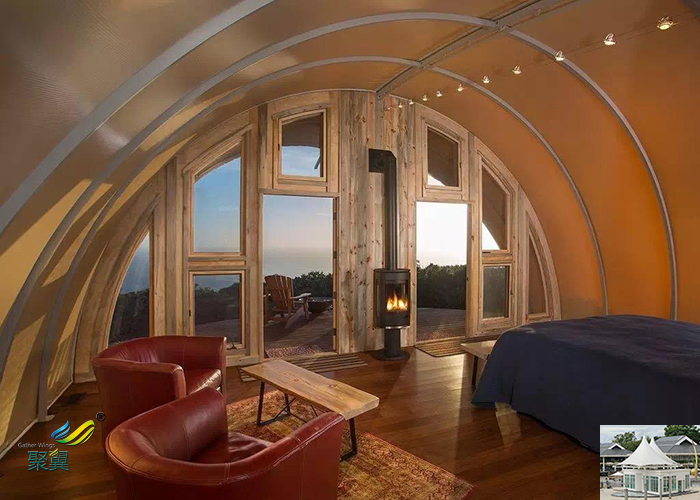 膜結構形狀變幻多端,由于其本身的特性(材質自重輕,支撐方式靈活)使得設計師可以在設計上充分發揮天馬行空的想象力,大家如果留意的話就可以看到大部分膜結構建筑造型非常活潑優美打破了傳統建筑形式的那種沉悶,非常具有張力及雕塑感,勢能能展現現代氣息的建筑形式之一。通過膜材和透光保溫材料的適當組合,可以使含保溫層的多層膜具有透光性。即使光譜透射只有幾個百分點,膜屋面對于人眼來說依然是發亮和透光的,具有輕型屋面的觀感。