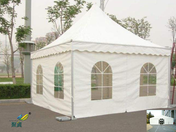 底面呈正方形,篷房頂像塔尖一樣,外形高雅。