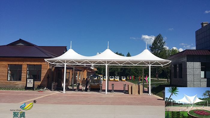 膜結構使用壽命及特點:膜結構景觀棚的篷布材質是膜結構,而膜材的最大特點是強度高、耐久性好、防火難燃、自潔性好,不受紫外線影響,使用壽命長,一般15-30年。