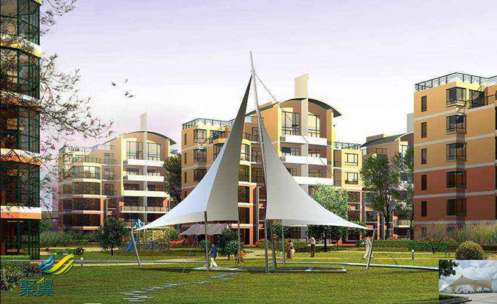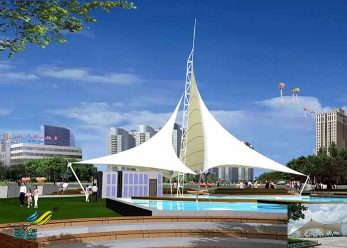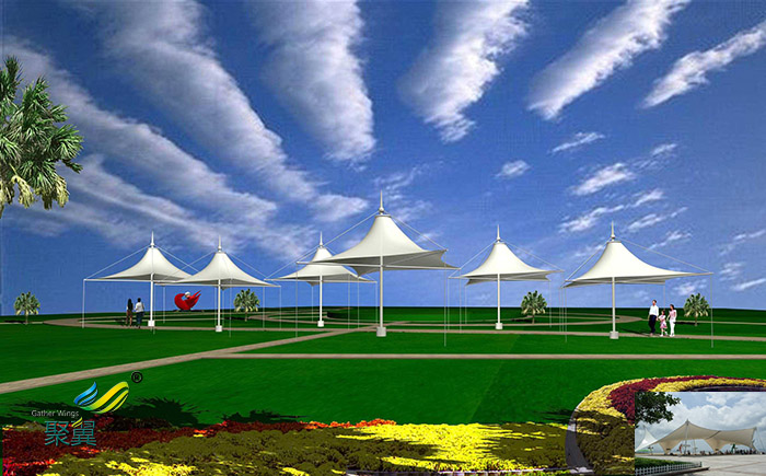 景觀膜結構建筑的造型豐富多彩、風格奇特,藝術性特別強,具有濃厚的時代建筑藝術魅力。而且優秀的膜結構建筑是結構與造型的完美結合,使膜結構顯得出類拔萃,輕型膜結構看以看成是大型的雕塑作品,可為其周邊空間添加活力,成為周圍環境的補充和焦點。