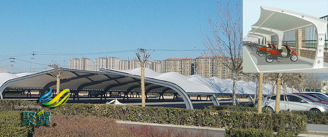 其次現如今的膜結構車棚比以往的停車棚完全不一樣,不僅在設計上大大突出了人性化的,在使用功能上也提高了一個臺階,也有很多城市將膜結構車棚納入城市規劃的行列,這一舉措不僅給市民出行帶來了很大一部分的優勢,同時也為綠色出行打下了堅實的基礎。