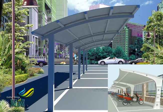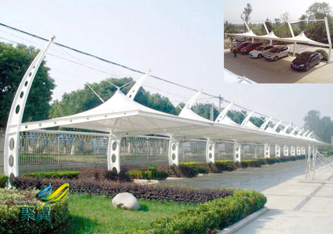 聚脂樹脂、人造纖維等素材多是與膜結(jié)構(gòu)車棚PVC材料做搭配,按使用分配應(yīng)該比較弱于玻璃纖維為基材的的膜結(jié)構(gòu)車棚。