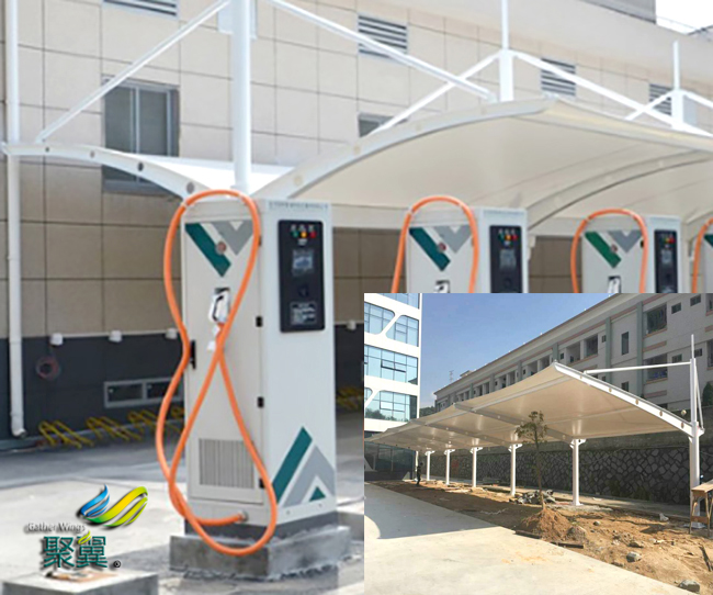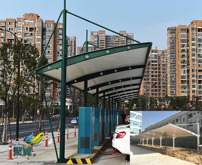 那這種膜結構車棚他究竟有何優點,使得目前在車棚行業領域被如此的看好呢。除了膜結構車棚所通常具有的作用外,這類膜結構車棚還有何優勢呢,具體看來有下面這幾點。