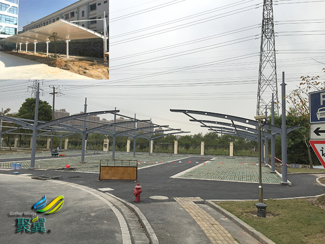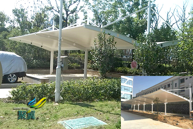 膜結(jié)構(gòu)車棚是提供給車輛停泊的地方,使車輛避免了風(fēng)吹雨打,來保護(hù)自行車,汽車等不受損傷。