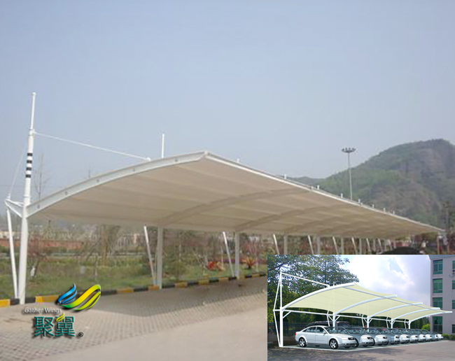 膜結(jié)構(gòu)車棚所用的原料有很多,主要原材料是膜材料,目前建筑膜材廣泛認(rèn)可的標(biāo)準(zhǔn)是日本JISA-93所規(guī)定的A(PTFE)、B、C三類,是根據(jù)膜結(jié)構(gòu)車棚防火性能的優(yōu)劣來劃分的。但是在施工中我們需要根據(jù)用戶的選擇來決定選擇哪種質(zhì)量的膜結(jié)構(gòu)車棚膜材料,但該膜結(jié)構(gòu)車棚是出自美國Weidlinger公司設(shè)計制作,由此也可以看出中國在該領(lǐng)域與國外先進(jìn)國家的差距很大。