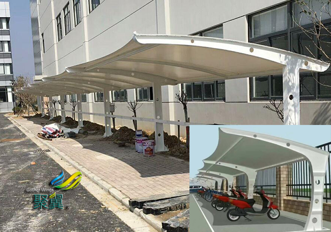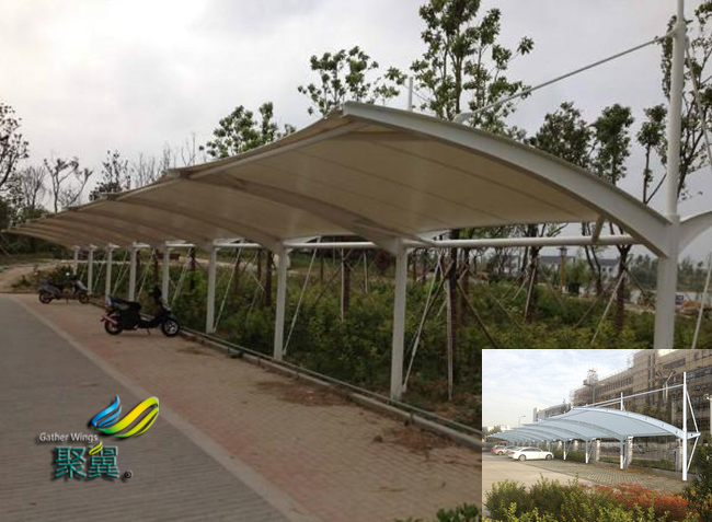膜結(jié)構(gòu)車棚建筑的施工周期與傳統(tǒng)建筑方式相比至少可縮短一半。膜結(jié)構(gòu)工程膜材料表面的自潔性高,表面與太陽自然光照越來越白,且清潔方便。