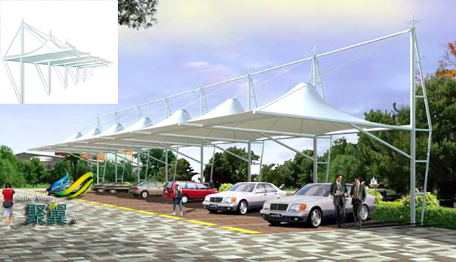 膜結構車棚結構經常被使用在景觀遮陽以及創意車篷,適合于大跨度的空間結構,膜結構車棚還以其優美的體形經常出現于中小跨度的建筑乃至建筑小品中。