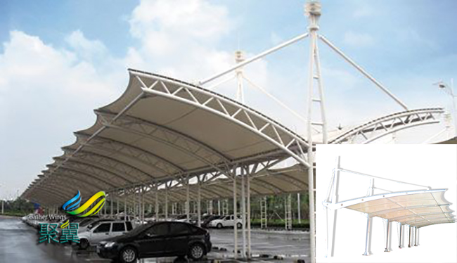 2、膜結構車棚鋼結構的問題。膜結構車棚除了使用膜材之外,還需要鋼結構來起到連接作用,但這些材質常年暴露在空氣中,就算本身性能較好,也會因為各種天氣的侵蝕而生銹,使得表面的涂料脫落。