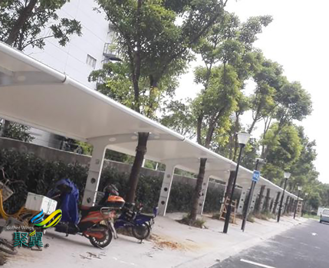 膜結(jié)構(gòu)車棚除了藝術(shù)性和獨(dú)特性之外,膜結(jié)構(gòu)車棚的實(shí)用性也不得不提,這歸功于膜結(jié)構(gòu)車棚的材料的特殊性,膜結(jié)構(gòu)車棚的主要材質(zhì)是膜材,同時(shí)作為遮蓋結(jié)構(gòu),膜結(jié)構(gòu)車棚膜材的張力使其能承擔(dān)一定的外荷,最有趣的是,即使出現(xiàn)不可負(fù)重的現(xiàn)象,由于膜材質(zhì)本身比較輕巧,也不會(huì)帶來太多的傷害。