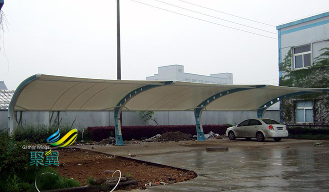膜結構車棚鋼構造加工|膜結構車棚受力點小