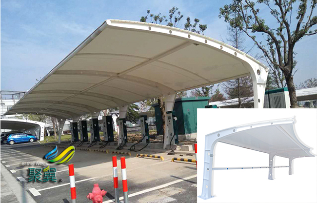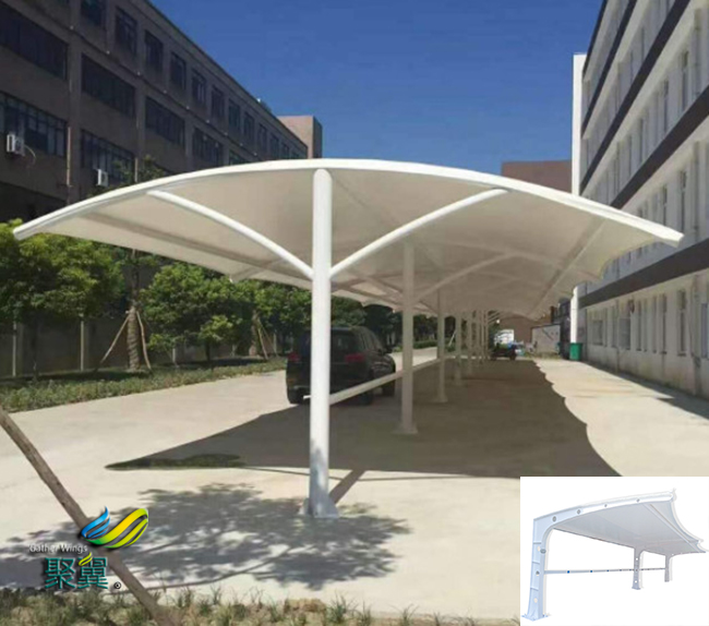 新一代的膜結構車棚產品,在進和設計的過程中,也把膜結構車棚耐用性提高到最實用的角度,所以產品綜合的性價比是最高的,現在很多高檔的社區以及公共場所,也大量使用這樣的設備。