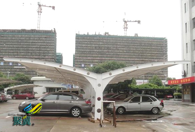 膜結(jié)構(gòu)車(chē)棚屬于鋼結(jié)構(gòu)的一種,為此它的強(qiáng)度高、重量輕,搭建的跨度比較大。膜結(jié)構(gòu)車(chē)棚主要采用的材料上主要是鋼材、鋼索、膜材料等等。
