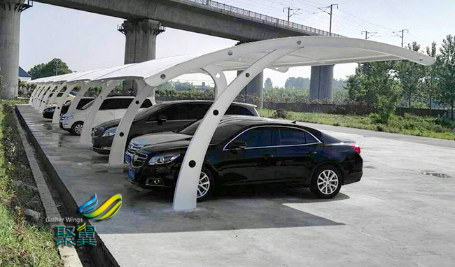 膜結(jié)構(gòu)車棚是一種建筑與結(jié)構(gòu)完美結(jié)合的結(jié)構(gòu)體系。膜結(jié)構(gòu)車棚是用高強度柔性薄膜材料與支撐體系相結(jié)合形成具有一定剛度的穩(wěn)定曲面,膜結(jié)構(gòu)車棚能承受一定外荷載的空間結(jié)構(gòu)形式。