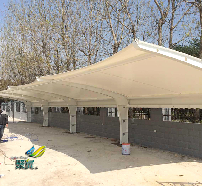 膜結(jié)構(gòu)車棚又叫做索膜結(jié)構(gòu)、張拉膜、膜結(jié)構(gòu)停車棚、張力膜或者是空間膜。膜結(jié)構(gòu)車棚一改了傳統(tǒng)建筑材料而使用新的膜材,膜結(jié)構(gòu)車棚的重量只是傳統(tǒng)建筑的三十分之一。而且膜結(jié)構(gòu)車棚可以從根本上克服傳統(tǒng)結(jié)構(gòu)在大跨度建筑上實現(xiàn)時所遇到的困難,可創(chuàng)造巨大的無遮擋的可視空間。
