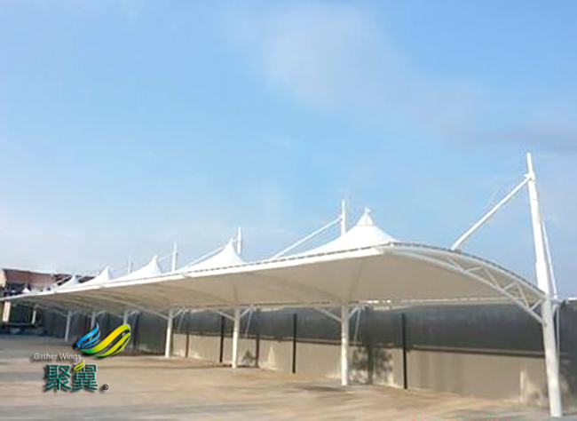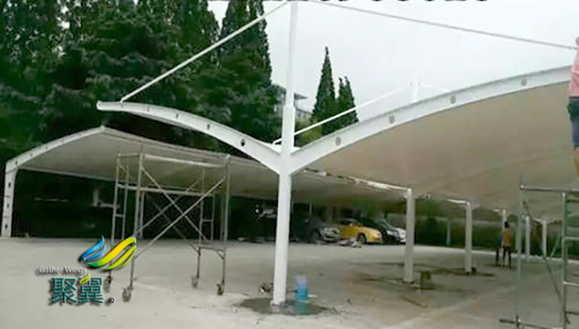 骨架式膜結構車棚是在鋼架或是其他材料的骨架上鋪裝膜材料的,以便能夠構造出不同形式的膜結構車棚。