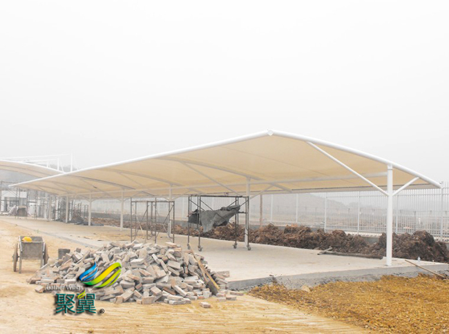完美膜結構車棚膜材對缺陷非常敏感,若膜材中存在小孔、裂紋等缺陷,膜結構車棚膜材強度會有比較大的降低,在膜結構車棚膜材與支承骨架相連處毛刺、尖角、尖點將使該處出現應力集中,對膜結構車棚膜材涂層擦傷也會影響膜材使用壽命。