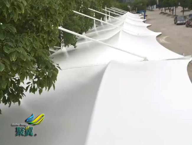 在展現人的個性化、膜結構車棚自娛性和多元性環境空間方面,膜結構車棚建筑有著獨具魅力的建筑藝術特點,膜結構車棚建筑作為一種現代化的工程結構,顯示了當今建筑與科學的發展水平。