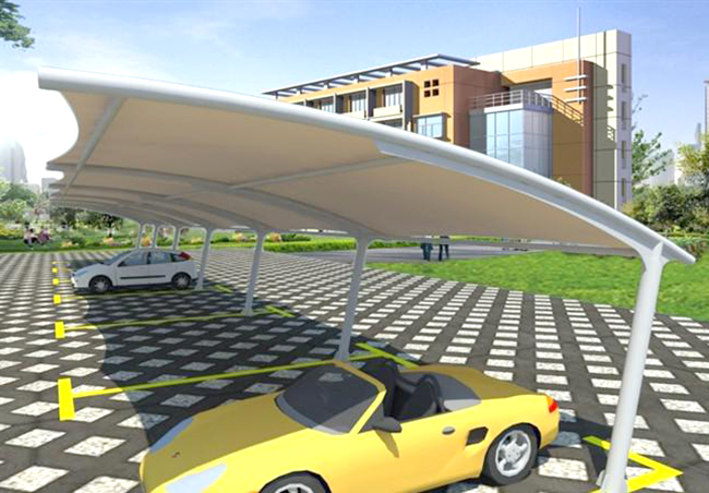 膜結構車棚所用膜材料由基布和涂層兩部分組成.基布主要采用聚酯纖維和玻璃纖維材料;膜結構車棚涂層材料主要聚氯乙烯和聚四氟乙烯。