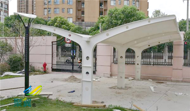 自從中國發起綠色出行以后,各大城市的自行車職業疾速開展,膜結構車棚自行車棚也是一種綠色交通設施,是市民們的自行車停放場所。因而,創造出更好的膜結構車棚自行車棚關于城市的綠色環境大有協助。新鮮客觀的外型更給人一種賞心悅目的感受,在發起市民多選用膜結構車棚自行車出行方法上可以起到必定的輔佐效果。