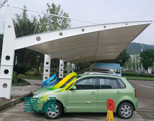 膜結構車棚最值得一提的是膜結構車棚可以根據支撐構件的位置和高低排列組成不同的形狀,這在金屬膜結構車棚上是無法想象的。所以膜結構車棚可以通過自身柔美的曲線和周圍的藝術景觀結合起來,給人以美的享受。