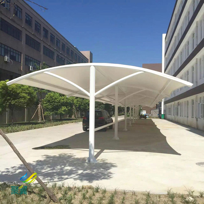 膜結構車棚的抗擊才能卻是遠遠的超越大家的想象,這種原料它的抗壓才能是一般玻璃的三百倍,膜結構車棚是亞克力這種資料的三十倍,可以說是非常堅固的。