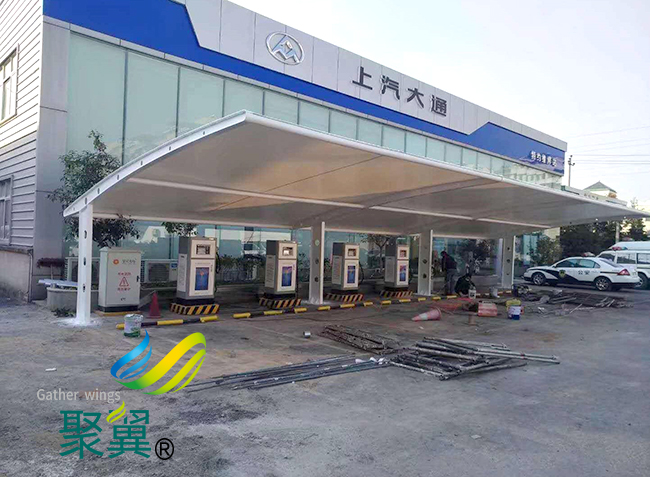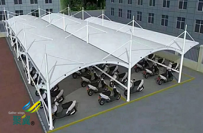 膜結構車棚優勢使用,對公共建筑的自然采光的需求,膜結構車棚膜材料的透光功能與采光的問題非常好,而且還節約能源.