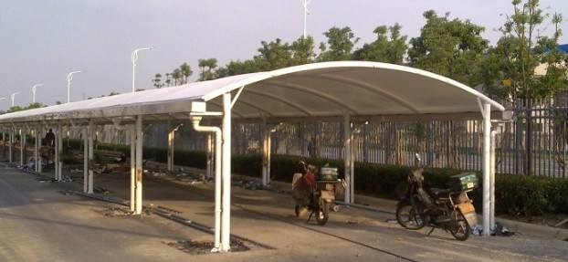 膜結構車棚新鮮客觀的外型更給人一種賞心悅目的感受,在發起市民多選用膜結構車棚自行車出行方法上可以起到必定的輔佐效果。