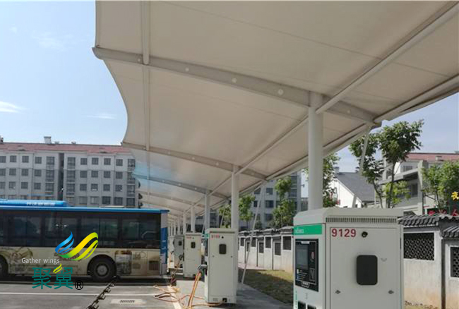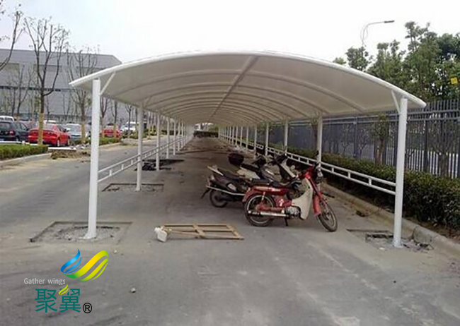 膜結構車棚是一種公用建筑物,這種產品的首要要求就是耐用穩固,膜結構車棚都是鋼構支撐柱,然后其上進行焊接等工藝加裝膜結構車棚膜材料頂棚。