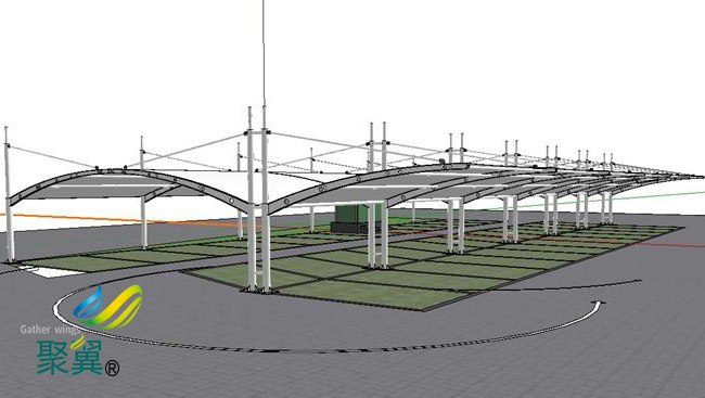 膜結構車棚不同于以往其他的停車棚,安裝前的設計是必不可少的,所以一定要在安裝前布局好和設計好整體的規劃。