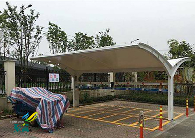 膜結構車棚資料自身也是具有自潔的功用,不需要消耗人工進行清潔,膜結構車棚自身的特性一起也發揮著很大的作用,防腐蝕性較高,膜結構車棚有較強的遮陽作用,而且有滿足的透光作用,在陽光強烈的時分,能遮擋住多于的紫外線。 膜結構車棚PVC膜材一般采用表面涂層的處理方法把容易揮發的添加劑密封在膜結構車棚膜材體內,以此保持膜結構車棚PVC的柔韌性,增強壽命。