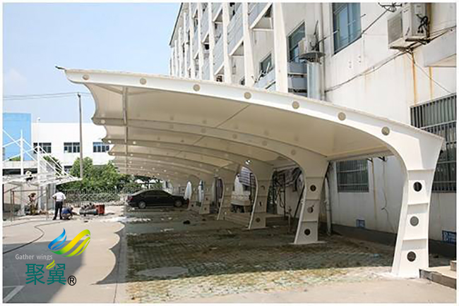 膜結構車棚測量放樣|膜結構車棚掛臂安裝