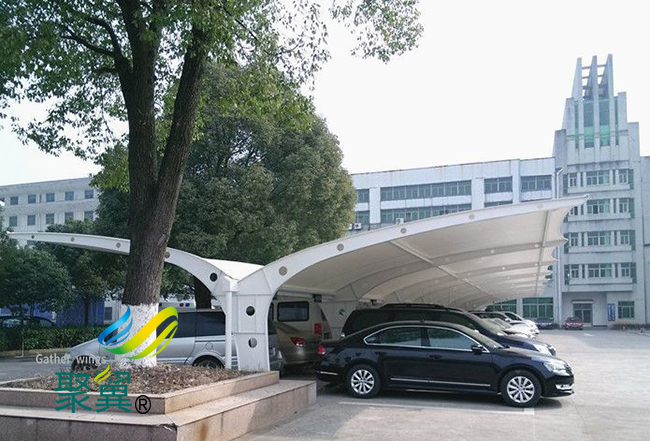 膜結構車棚是建筑與結構完美結合的一種結構體系。膜結構車棚膜材本身的受彎剛度幾乎為零,但通過不同的支撐體系承受膜面張力,而形成具有一定剛度的穩定曲面。