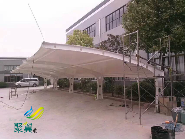 膜結構車棚膜面的質量。施工的時候都需要對膜面進行嚴格的保護,比如嚴禁其與地面接觸,不能隨意踩在上面。如果不注意的話,膜結構車棚膜面就會被刮壞或是弄臟,這樣就影響了它的美觀。