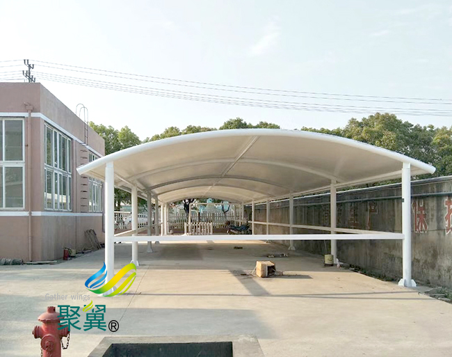 膜結構車棚本身重量很輕,所以它會在施工時節省了大量的人力物力。膜結構車棚建筑按照“零資源,零能耗,零污染,零工地,零間隔”這六個建筑設計理念,成為綠色環保建筑的代表。
