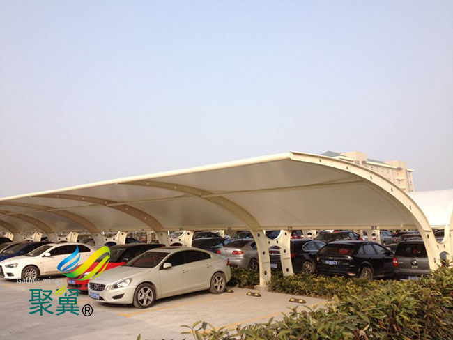 膜結構車棚妙用,自然是膜結構材料所帶來的優點,膜結構材料因為膜結構車棚具備透光性較強,并且膜結構車棚能夠遮擋住多余的紫外線,在強烈的陽光下,不會產生燃燒的效應,而膜結構車棚能夠遮風擋雨的特性,是其他的材料所無法比擬的,很多大的設備廠家或者是企業之所以選擇這種材料是因為材料的優越性。