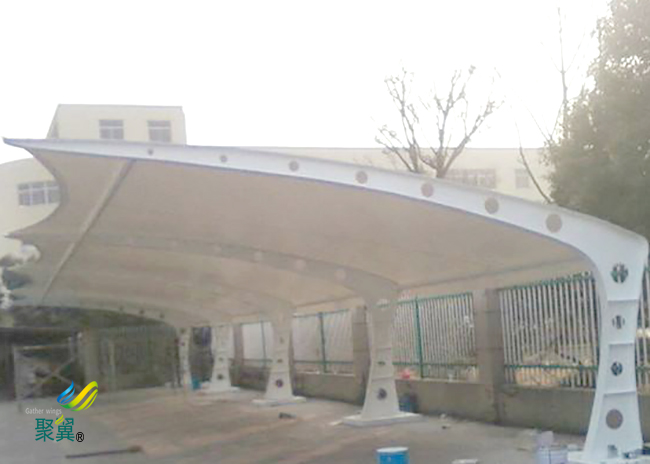 同時注意膜結構車棚立柱底腳采用10mm厚鋼板與預埋件牢固焊接,在安裝膜結構車棚的時候將預埋件用混凝土澆筑后,用螺栓與立連接,抗風系數高,增加膜結構車棚整體牢固程度,膜結構車棚能抵抗12級以上臺風來襲,這就是膜結構車棚安裝尤其要注意細節問題。