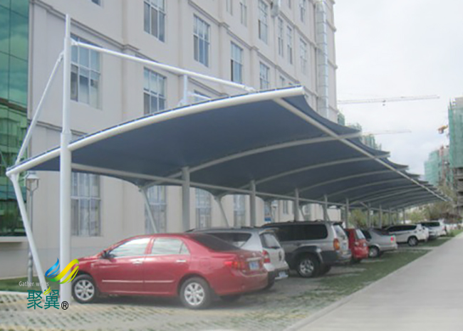 膜結構車棚膜構造的支架構造是由高強度構架產生內部的伸拉才能,構成一定的外形,作為掩蓋構造,膜結構車棚膜構造膜結構車棚能滿足車輛車風擋雨需求,也能有效的維護車輛起到減緩車輛老化速度的功用。