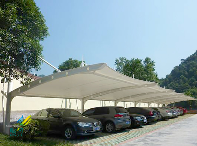 膜結(jié)構(gòu)車棚的應(yīng)用過程中,我們不可避免的會遇到一些膜片的撕裂現(xiàn)象,所以日常我們應(yīng)當加強其保養(yǎng),如在膜結(jié)構(gòu)車棚設(shè)計過程中要確保其膜面在張拉之后有足夠的剛度,在膜結(jié)構(gòu)車棚細部構(gòu)造設(shè)計中也要考慮其次張力。倘若膜材料表面有松弛現(xiàn)象出現(xiàn),此時我們需要對其進行二次張拉。在其節(jié)點上,也要確保有足夠的靈活度與自由度,這樣在環(huán)境風(fēng)力比較大的時候就可以比較自由的應(yīng)對了。膜結(jié)構(gòu)車棚張拉過程要注意循序漸進,并對其膜面的實際情況進行嚴密監(jiān)控,避免出現(xiàn)應(yīng)力集中或是張拉過度等現(xiàn)象。
