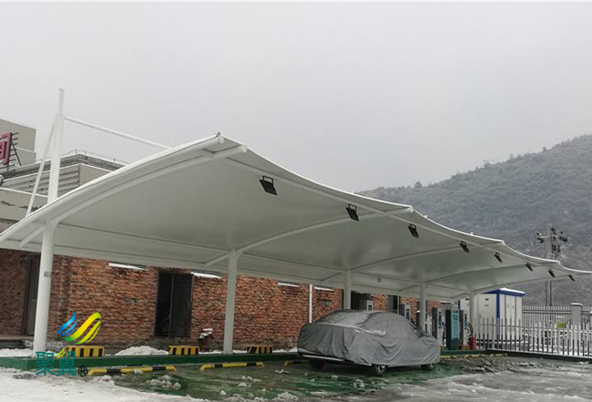 膜構造的車棚不僅使用的壽命長,并且整體的外面也好體驗的大方、簡介、總體來說十分的美觀,能夠過得更好的用戶體驗。