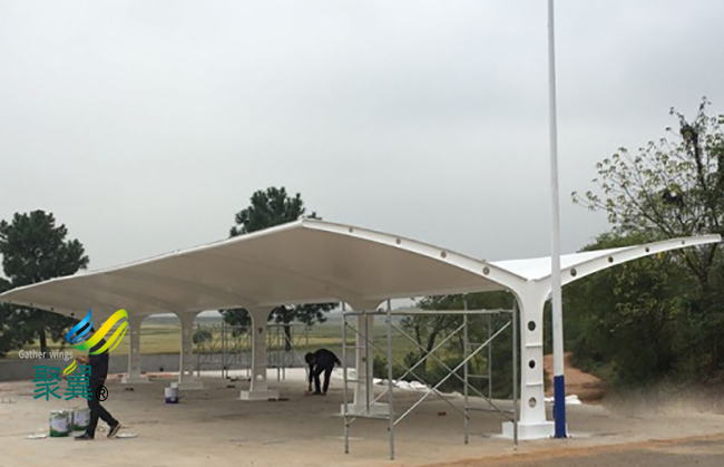 膜結構車棚的工期是很短的,在拆裝的時候也是很方便的。它的結構形式是很簡潔的,設計也是很專業的,整個工藝流程也會很完善,這樣膜結構車棚在制作的過程中時間就會大大縮短,膜結構車棚所采用的是可以調節和裝卸的節點形式。